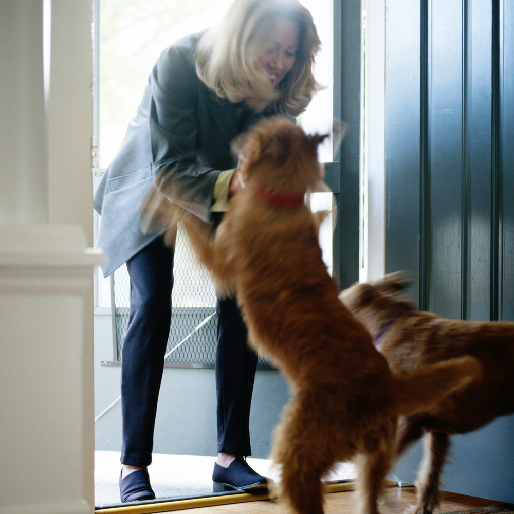 - Open the front door and greet Rex calmly and quietly. If he jumps on you or a guest, ask everyone to immediately back up, closing the door as you go. Resist the urge to use your hands (or knees!) to push Rex off.